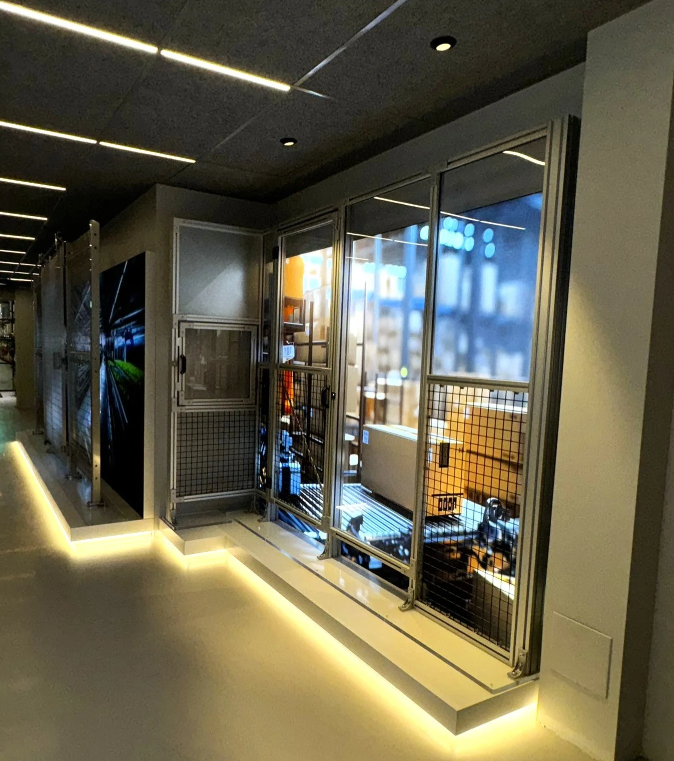 Ett projekt som omfattade kontor, lager och personalutrymmen men framför allt produktion och montering där industribelysningen stod i centrum. I de 40.000 kvadratmeter stora produktions och lagerlokalerna levererade vi ett tusental industriarmaturer, där SH LED utgjorde merparten. De robusta lösningarna, i kombination med Frigg, skapade ett starkt och jämnt ljus som underlättar vardagen och bidrar till en bra arbetsmiljö. Samtidigt tog vi ett helhetsgrepp om hela anläggningen. I kontoren installerades M25, medan LED-panelerna Vixie i korridorerna berättar historien om Troax och skapar stolthet och identitet. I entrén placerades Lightbox, en riktigt cool lösning som direkt sätter tonen när man kliver in. Personalutrymmena fick extra omsorg med hjälp av våra partners Monolight, Toniton och Nexia. Circle vägglampor och M4 tracklight gav rummen karaktär och en känsla som verkligen lyfter vardagen.